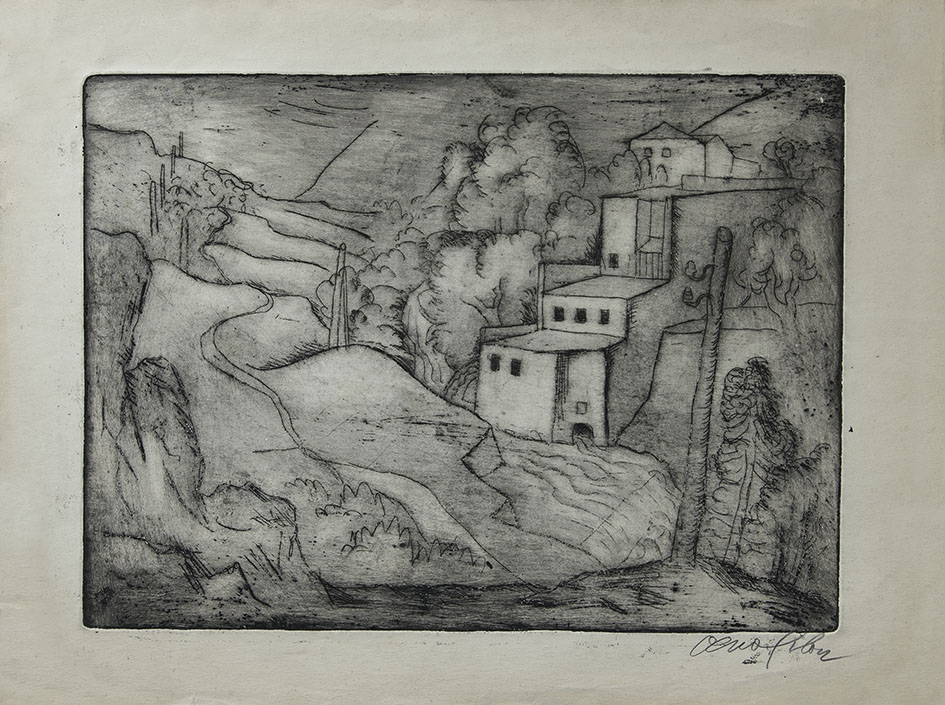Veno Pilon, Stara elektrarna na Hublju, ok. 1923, jedkanica, papir, Pilonova galerija Ajdovščina