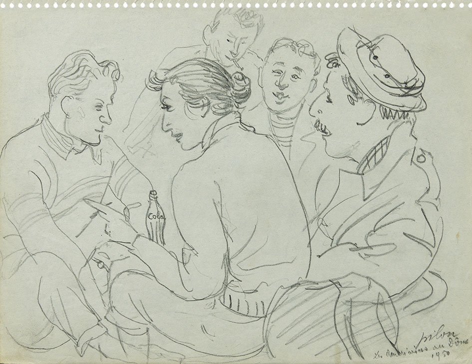 Veno Pilon, Les americains au Dôme, 1950, svinčnik, papir, 20,8 x 26,9 cm, Pilonova galerija Ajdovščina, foto: Primož Brecelj