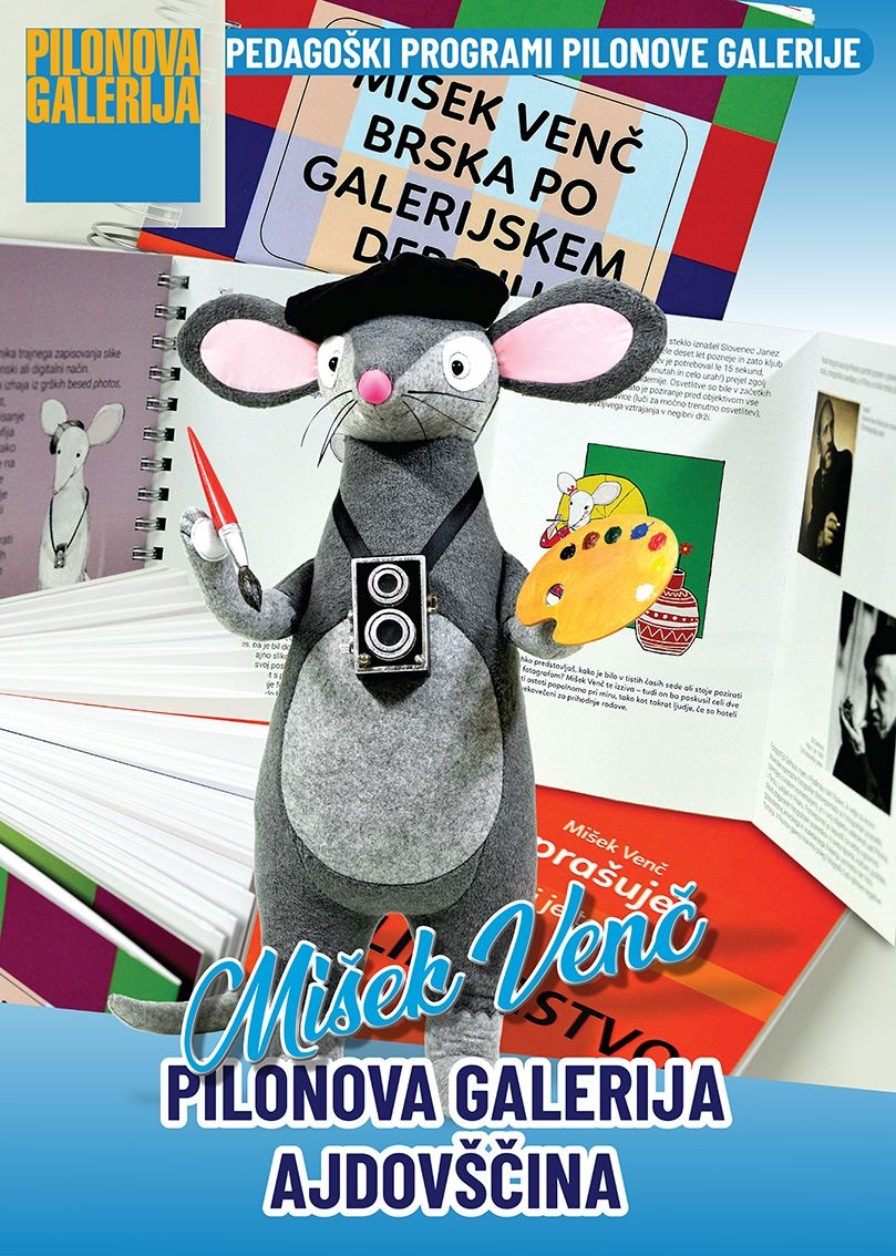 Na letošnjem Kulturnem bazarju sodelujemo s predstavitvijo galerijske didaktične publikacije Mišek Venč brska po galerijskem depoju. Njena zgodba, ki mlade raziskovalce spodbuja k odkrivanju sveta umetnosti, se je zapisala Tanji Cigoj, avtor podobe knjižice ter fotografij v njej je Primož Brecelj, nadgrajujejo pa jo ilustracije Anje Kranjc.