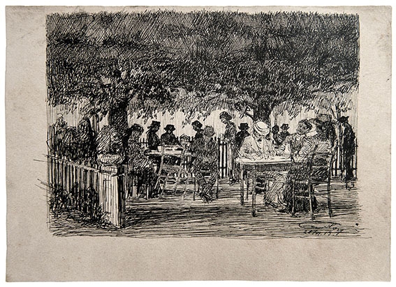 Foto: Veno Pilon, Na gostilniškem vrtu, 1915, perorisba, Pilonova galerija Ajdovščina