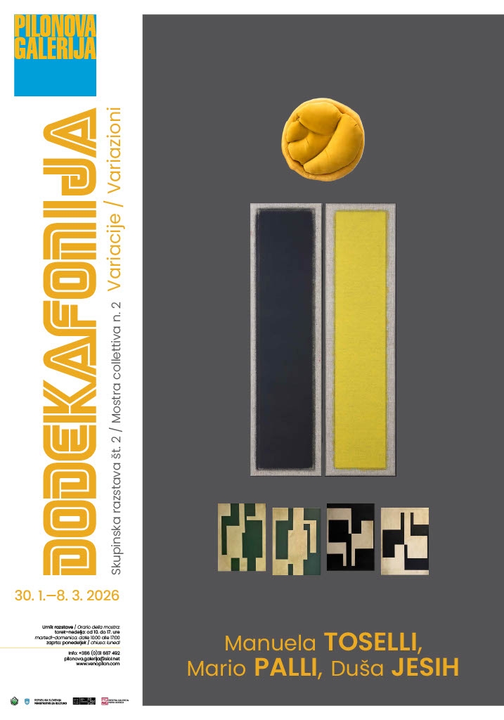 La S.V. è gentilmente invitata all’inaugurazione della mostra DODEKAFONIJA – Variacije / Variazioni, che si terrà venerdì 30 gennaio 2026 alle ore 18.00 presso la Pilonova galerija Ajdovščina.