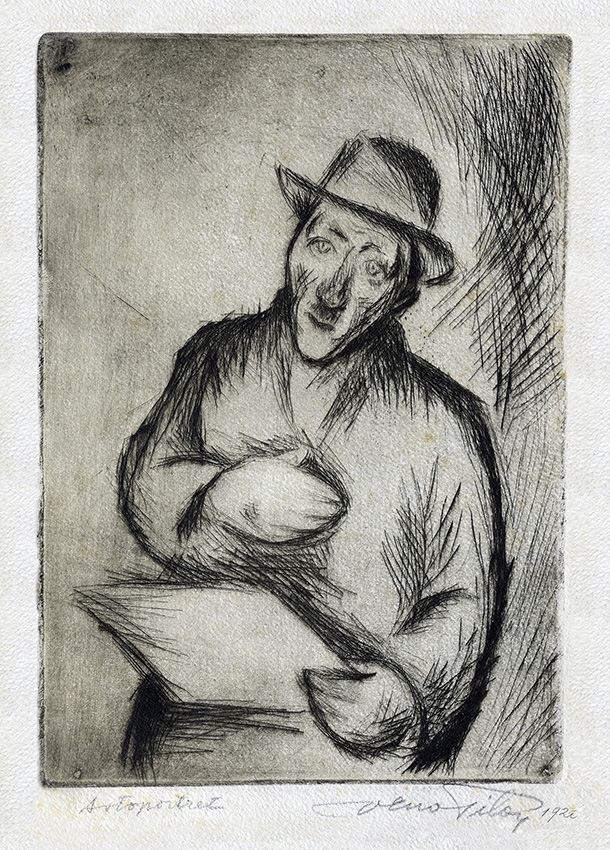 Foto: Veno Pilon, Avtoportret, 1920, jedkanica in suha igla, Pilonova galerija Ajdovščina